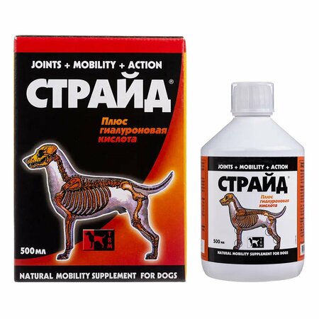 Достоинства:Хороший состав, очень хвалит наш ветеринар. Собака кане-корсо 12 лет,поддерживаем страйдом кости и суставы последние лет 5.