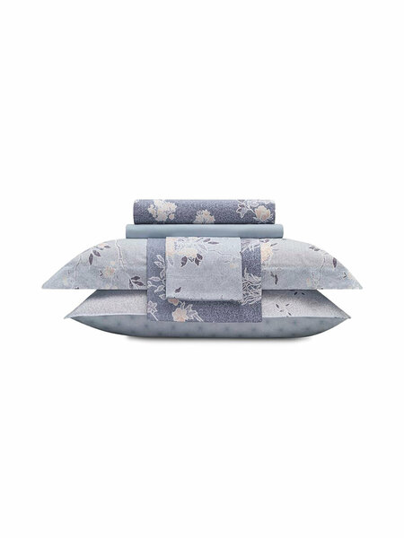 Комплект «Сиена» изготовлен из плотного, прочного хлопка-сатина. Ткань с сатиновым плетением нитей гладкая, мягкая и шелковистая. Белье из хлопка-сатина не деформируется и не дает усадки, его краски не поблекнут после многочисленных стирок. В основе этого комплекта лучшие сорта длинноволокнистого хлопка. Из длинных волокон получается очень прочный и одновременно мягкий материал, который хорошо впитывает влагу. Комплект выполнен в лилово-голубых тонах с бежевыми элементами рисунка. Стилизованный растительный орнамент на ткани напоминает старинные японские картины и гравюры. Восточное искусство, которое отличается самобытностью и умиротворяющей эстетикой, дополняет гармоничная и успокаивающая лилово-голубая палитра. Цветущие деревья и птицы символизируют красоту и процветание, в Японии с давних времен существует уникальная традиция ханами — любования цвете¬нием растений. Двусторонний пододеяльник и наволочки оформлены разными орнаментами, на внутренней стороне мелкий растительный принт.