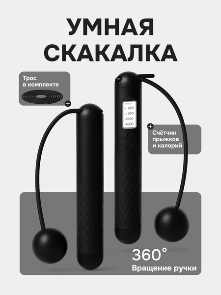 Умная скакалка HealthWave со счетчиком прыжков и калорий с утяжелителями. Электронный датчик с точным подсчетом прыжков: наша скакалка профессиональная подсчитает каждый ваш прыжок, проверено! Яркий и четкий дисплей экрана: LED дисплей на скакалке ведет не только счётчик прыжков, но и количество сожжённых калорий, показывает время тренировки. Утолщенная веревка: шнур от скакалки выполнен из углеродистой стали, а сам корпус изготовлен из поливинилхлорида (ПВХ). Верх ручки скакалки вращается на 360 градусов без помех: сделает ваши тренировки еще комфортнее. В комплекте со скакалкой идут 2 утяжелителя: позволит вам заниматься спортом в любое месте и в любое удобное время. Длина скакалки составляет 2,8 метров, которую можно еще регулировать в соответствии с вашим ростом. Подходит для занятий как начинающим, так и профессионалам, в художественной гимнастике, в спортзале, для занятий в домашних условиях и на улице.