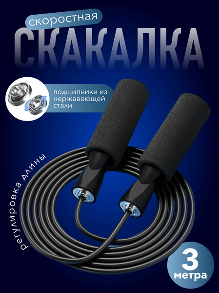 Спортивная скакалка для фитнеса, бокса и активных тренировок — ваш личный помощник в пути к идеальной форме! Скакалка — универсальный и эффективный тренажёр для взрослых и детей. Она подойдёт для занятий дома, в зале, на улице и даже в офисе. Хотите сжигать больше калорий, улучшить выносливость и привести тело в тонус? Скакалка для фитнеса — то, что нужно! Подходит для кроссфита, бокса, гимнастики и других активных тренировок. Особенно популярна как скакалка для бокса и скакалка для фитнеса взрослая — благодаря высокой скорости вращения и плавному движению без перекрутов. Это обеспечивают встроенные подшипники в ручках. Трос выполнен из прочной стальной проволоки в гибкой ПВХ-оболочке — долговечный и устойчивый к износу. Длина регулируется до 3 метров, поэтому подходит и как скакалка детская, и как скакалка спортивная взрослая — универсальное решение для всей семьи. Удобные ручки с мягким, нескользящим покрытием комфортно лежат в руке и не натирают кожу, даже при интенсивных занятиях. Такая спортивная скакалка развивает координацию, укрепляет сердечно-сосудистую систему и помогает в борьбе с лишним весом — калории сжигаются быстрее, чем при беге! Подходит как скакалка гимнастическая, скакалка боксерская, или просто для ежедневной активности. А для малышей — отличная скакалка детская спортивная, безопасная и лёгкая в использовании. Выбирайте качество и комфорт — тренируйтесь с удовольствием!