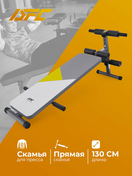Скамья для пресса DFC DB140/2 с желтым рисунком – надежный тренажер для домашних тренировок! Эта скамья спортивная спортивная сочетает в себе прочность, функциональность и удобство. Стальная рама из профиля 38 х 38 х 1,2 мм гарантирует прочность и устойчивость даже при интенсивных нагрузках. Максимальный вес пользователя составляет 120 кг, что делает скамью подходящей для большинства пользователей. 5 уровней регулировки угла наклона скамьи для жима позволяют менять нагрузку и эффективно прорабатывать разные группы мышц. Вы можете выполнять подъемы корпуса для прокачки пресса, подъемы ног для нижнего отдела живота, а также использовать скамью для упражнений с гантелями. Эргономичные регулируемые валики из вспененного материала обеспечивают комфорт во время тренировки. Нижние валики регулируются на 4 уровня, что позволяет надежно фиксировать стопы. Дополнительные удобства включают стойку для отжиманий и упоры, расширяющие спектр упражнений. Кор-доска отличается устойчивостью благодаря прорезиненным ножкам, которые защищают пол от царапин и предотвращают скольжение. Обивка выполнена из водонепроницаемой экокожи, что облегчает уход за тренажером.