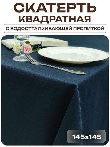 Скатерть 145x145 см, цвет синий изготовлена из ткани коллекции Грета, состав ткани 50% хлопок 50% полиэстр, плотность ткани 183 г./м2. Эта ткань специально разрабатывалась фабрикой для ресторанов, кафе, гостиниц, что позволяет изделиям, сшитым из этой ткани выдерживать большое количество стирок без потери эксплуатационных свойств. Для окраса ткани используется стойкий краситель, который на протяжении всего срока службы сохраняет сочный, насыщенный цвет. С этой ткани легко отстирываются практически любые загрязнения. Ткань имеет грязе-водоотталкивающую пропитку и любые жидкости, пролитые на ткань, не впитываются в структуру волокон ткани, а как капельки ртути остаются на поверхности. Вам достаточно взять бумажную салфетки и удалить загрязнение. Данная пропитка сохраняет свои свойства на протяжении 25-30 циклов стирок, после этого периода, ее действие начнет ослабевать, но вы будете продолжать пользоваться изделиями как и прежде.