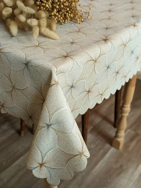 Многоразовая непромокаемая скатерть из ПВХ на тканевой основе на стол. Стильная и красивая, рисунок -цветы в серой и бежевой гамме, поверхность имитирует ткань с вкраплениями блесток на поверхности. Моющаяся и водоотталкивающая клеенка подходит для декора и сервировки обеденного стола, уютного оформления кухни, столовой или гостиной. Выглядит очень нарядно и добавит уюта вашему пространству, а прямоугольная форма идеально подойдет для большинства столов и столешниц. Наша красивая скатерть ПВХ подойдет, как замечательный подарок для вашей мамы, бабушки, подруги, коллеги или учителя на 8 марта или любой праздник. Рекомендации по использованию: Можно воспользоваться отпаривателем с изнаночной стороны, чтобы избавиться от заломов после распаковки. Допускается ручная стирка. Советуем вам своевременно убирать пятна влажной губкой, можно использовать жидкие моющие средства. Рекомендуем вывертивать скатерть перед первым использованием в течении 24 часов на балконе или сведем воздухе. В первую неделю после начала использования возможно появление блесток на губке при протирании стола - это вариант нормы. Размер 140х110 см. Допускается отклонение в размерах до +/-3 см.