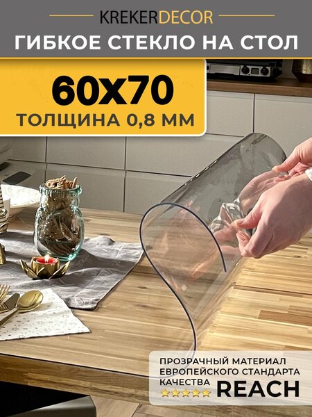 Прозрачная скатерть на стол водоотталкивающая прекрасно дополнит вашу кухню. Впишется в любой интерьер. Размер 60 х 70 см, толщина 0,8 мм, при необходимости легко корректируется под нужные параметры, идеальные края. Прозрачный материал, не мутнеет и не пожелтеет со временем. Водонепроницаемая поверхность, надежная защита от царапин и сколов. С нашей защитной пленкой Вы можете быть спокойны за сохранность Вашей мебели. Лаконичный, не броский внешний вид подчеркнет всю красоту стола на кухне. Скатерть жидкое стекло на стол - идеально прилегает, не топорщится, не скатывается, "сидит" устойчиво. Подойдет под любую форму столешницы - прямоугольная, овальная, круглая, квадратная. Подходит на любую мебель - садовая, как накладка подложка на письменный стол, комоды с ящиками, журнальный столик, тумбу. Можно использовать как клеенку для творчества маленьких детей и как коврик на подоконник. Кухонные скатерти прямоугольные из текстиля (тканевые) с пропиткой в унисон с вафельными полотенцами - уже ушедший тренд, в моде лаконичность, стильная простота. И товары из мягкого гибкого стекла тому подтверждение. Силиконовая однотонная скатерть клеенка будет одинаково элегантно смотреться в обыденный и праздничный день в Вашем доме. Сделает ваше гнездышко уютным. Забудьте, как на праздник крахмалили большую белую скатерть из хлопка и льна, и как сложно было ее потом отстирать. Наша влагоустойчивая, легко моющаяся плотная пленка дорожка станет чистой, стоит только протереть ее влажной тряпкой. Она гораздо прочнее, чем обычная декоративная клеенка на стол. Подходит для декора дома и дачи. Зачем искать одноразовое настольное покрытие, если есть эта незаменимая вещь. Можно брать в дорогу, использовать как дорожный походный вариант. Обращаем ваше внимание, что нельзя ставить горячее, так как изделие не термостойкое! Красивая непромокаемая скатерть гибкое стекло станет отличным подарком на день рождение подруге, брату, на пасху, Новый год. А также мама, сестра, жена, любимая девушка будут рады такому подарку на 8 марта. Идеально впишется в подарочный набор для кухни на свадьбу или новогодний презент. А также это станет великолепным решением при поисках пасхальных товаров на Пасху. Выполнена из высококачественного материала пленка прозрачная пвх станет украшением для кухни. Не будет отвлекать взгляд от стиля, декора (полотенца кухонные, часы, картины, постеры). Хотите сэкономить время на уборке кухни и больше времени проводить с близкими людьми? Приобретайте данный товар, Ваш стол будет сиять за 1 минуту, а оставшееся время Вы с радостью проведете с родными.