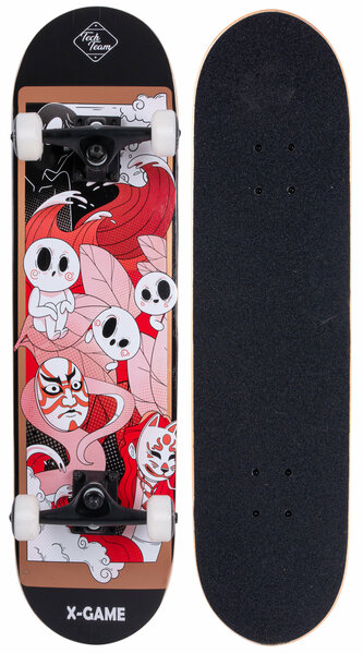 Скейтборд X-GAME - компании Tech Team. Подойдёт для катания по городу, а также паркам и другим местам. Принт деки порадует не только детей, но и взрослых. Этот скейтборд для новичков, кто безумно хочет научится первым навыкам трюков и катания . Дека изготовлена из девяти слоёв китайского клена, что гарантирует прочность и гибкость, выдерживает вес до 85 кг. Доска маневренная при поворотах и разворотах , за счет мягких бушингов (амортизаторы) стандарта жесткости 95А установленных на подвеске. Подвеска регулируется , а вместе с этим настраивается и маневренность доски. Колеса стандарта жесткости 95А, обеспечат плавную езду по пригодной, ровной дороге. Особенности модели: Дизайн в трех вариантах Подойдёт для начинающих взрослых и детей Дека размером 31"х8", толщиной 11,5 мм Колеса из полиуретана 52х32 мм Подшипники стандарта Abec 7 Характеристики : Макс. нагрузка - 85 кг Вес без упаковки - 2,35 кг Дека: Материал - дерево Конкейв - средний Шкурка - наждачка Длина - 79 см Колеса: Диаметр - 52 мм Материал - полиуретан Подшипники - ABEC 7 Chrome Подвеска Материал траков - алюминий Ширина траков - 12 см Жесткость амортизаторов - 95