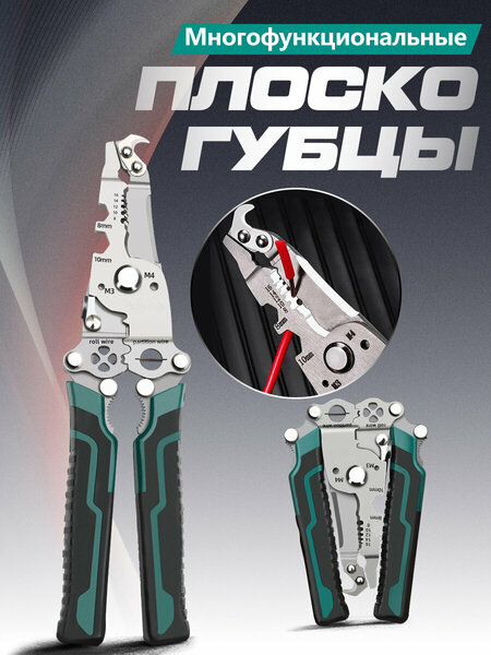 Складной инструмент для зачистки проводов - это многофункциональный инструмент, который объединяет в себе функции кримпера, стриппера, плоскогубцев и предназначен для работы с различными типами кабелей.