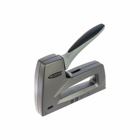 Мебельный степлер Gross Aluminium 140 41007 в литом алюминиевом корпусе работает со скобами типа 140 размером 6-14 мм и гвоздями типа 300 размером 16 мм, оснащен двухпозиционным регулятором силы удара и эффективен при работе с тканями, ПВХ-пленкой, а также фанерой, оргалитом, ДВП и ДСП. Используется для сборки и обивки мебели, укладки ковровых покрытий и проведения багетных работ. Благодаря прочному корпусу снижена вероятность поломки в результате падения. Двухпозиционный регулятор позволяет установить оптимальную силу удара в зависимости от плотности материала. Степлер подходит для использования дома и на производстве.