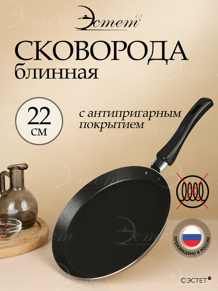 Сковорода 22 см антипригарная для блинов: качество и безопасность Сковорода выполнена из качественного пищевого алюминия, что обеспечивает равномерное распределение тепла и его длительное сохранение. Оптимальная толщина стенок и дна (1.3 мм) гарантирует равномерное приготовление блюд. Антипригарное покрытие не содержит PFOA и абсолютно безопасно для вашего здоровья. Благодаря этому покрытию, вы сможете легко и без усилий готовить свои любимые блины, не опасаясь, что они прилипнут к сковороде. Удобная эргономичная ручка не нагревается в процессе приготовления, что делает использование сковороды еще более комфортным. Сковороду можно мыть в посудомоечной машине, что значительно облегчает процесс уборки после приготовления пищи. Основные характеристики сковороды: - Диаметр дна: 20.0 см - Высота стенок: 2.5 см - Ширина: 22.0 см - Тип: сковорода блинная - Особенности: мытье в посудомоечной машине - Материал: алюминий - Антипригарное покрытие: Да - Мытьё в посудомоечной машине: Да Выбирая сковороду 22 см антипригарная для блинов, вы получаете качественный и безопасный продукт, который станет незаменимым помощником на вашей кухне.