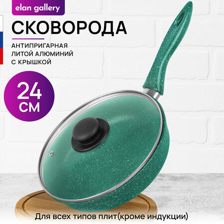 Сковорода глубокая 24 см Elan Gallery гармония вкуса Изумруд с крышкой D24, с несъёмной ручкой