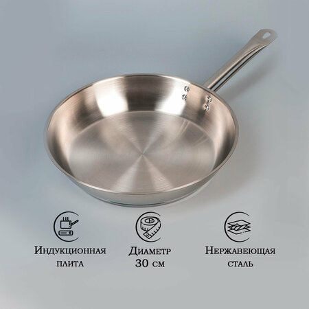 Сковорода Катунь «Общепит», d=30 см, корпус 0.6 мм, дно 3.5 мм, с теплораспределительным слоем, металлическая ручка, индукция