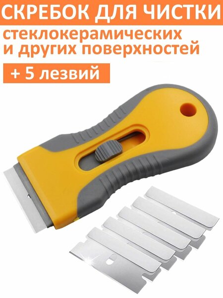 скребок для стеклокерамики - 1 шт, сменные лезвия - 5шт.