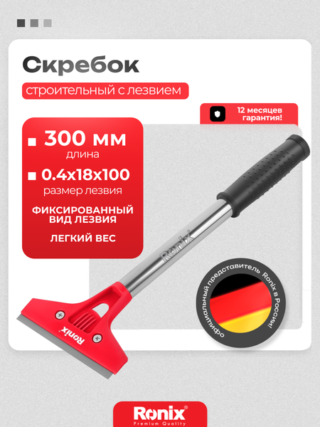 Скребок строительный Ronix длина 30 см для стен, ширина лезвия 100 мм