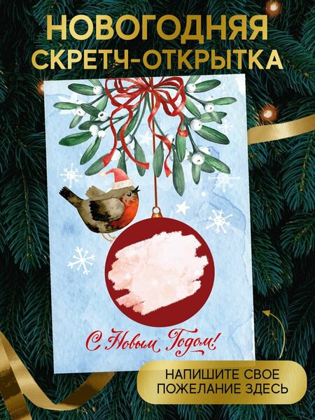 Скретч открытка новогодняя со стирающимся слоем с конвертом пустая