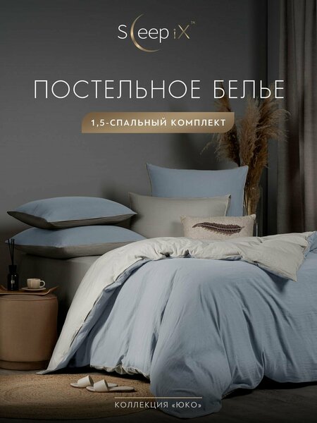 Постельное белье бренда SleepiX коллекции «ЮКО» 1.5 спального размера изготовлено из ткани улучшенного состава 60% модал 40% бамбук в плетении сатин высокого качества, плотностью 110 г/м2. Смесовый материал с "браш" обработкой из разного вида целлюлозы делает постельное белье более тактильным, нежным и износостойким. Легкий жатый эффект ткани облегчает уход за бельем и практически исключает необходимость глажки после стирки. Наукой давно доказано, что цвет способен менять настроение, эмоциональный настрой, бодрить или успокаивать. При создании данного дизайна мы использовали научный подход "психологии цвета" в подборе оттенков для двухстороннего белья. Наволочки и пододеяльник в комплекте украшены декоративным кантом в тон ткани. Конструктивно комплект продуман до мелочей: -Пододеяльник имеет потайную молнию, которая предотвращает выбивание одеяла во время сна. -Наволочки имеют прорезь с клапаном 20 см и подходят для любых подушек размером 50х70см. -Увеличенный размер простыни 180х220см позволяет ей надежно держаться на матрасе и всегда имеет опрятный внешний вид. Комплект упакован в текстильный чехол на молнии и стильный шубер, благодаря этому может послужить хорошим подарком друзьям и близким на любое событие. Постельные принадлежности "ЮКО" это идеальное сочетание стиля и комфорта, созданные специально для тех, кто ценит высокое качество и ощущение роскоши.