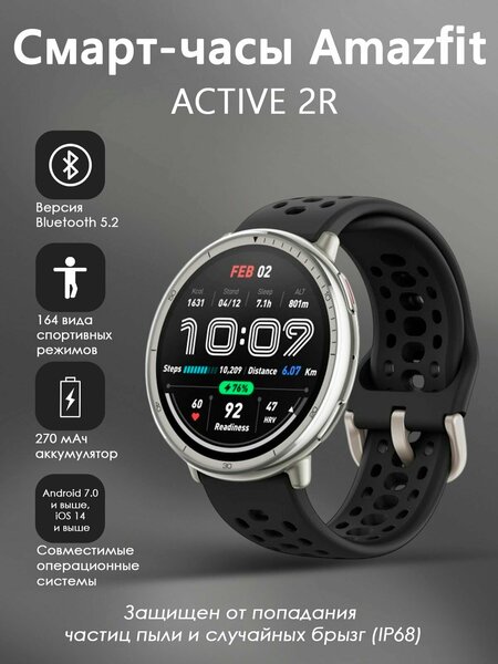 Смарт-часы Amazfit Active 2R A2437 — это умные часы, которые помогут вам следить за здоровьем и оставаться на связи в любой ситуации. Ищете качественные умные часы? В каталоге Mobile вы найдёте смарт часы, фитнес браслет, смарт браслет на любой вкус. Смарт часы мужские Active 2R A2437 не только функциональны, но и стильно выглядят. Они станут отличным дополнением к вашему образу и подчеркнут вашу индивидуальность. Основные особенности: Мониторинг здоровья: часы оснащены датчиками, которые отслеживают частоту сердечных сокращений, уровень кислорода в крови, качество сна и другие показатели здоровья. Спортивные режимы: Amazfit Active 2R поддерживают различные спортивные режимы, позволяя отслеживать прогресс в тренировках и достигать поставленных целей. Уведомления и управление: вы сможете получать уведомления о входящих звонках, сообщениях и других событиях на вашем смартфоне, а также управлять музыкой и камерой прямо с часов. Долговечная батарея: часы обеспечивают длительное время работы без необходимости частой подзарядки, что делает их удобными в использовании. Стильный дизайн: компактный и лёгкий корпус, а также разнообразие цветовых решений позволяют подобрать модель, которая идеально подойдёт к вашему стилю. Популярные модели Смарт часов в магазине Mobile: •Amazfit •Samsung •Dizo •TFN •Wifit Выбирайте умные часы под ваши потребности: По размеру По назначению: спорт, здоровье, развлечения По дополнительным функциям: GPS, широкий набор спортивных режимов, здоровье и фитнес По совместимости: для Android, iPhone, компьютеров iOS и Windows Преимущества смарт-часов: ✓ Стабильное соединение без задержек ✓ Надёжная конструкция ✓ Доступная цена ✓ Длительный срок службы Покупая наши смарт-часы, вы получаете качественный продукт по выгодной цене. Сделайте заказ уже сегодня и наслаждайтесь всеми преимуществами современных технологий! Не упустите возможность улучшить свою жизнь с помощью умных технологий!
