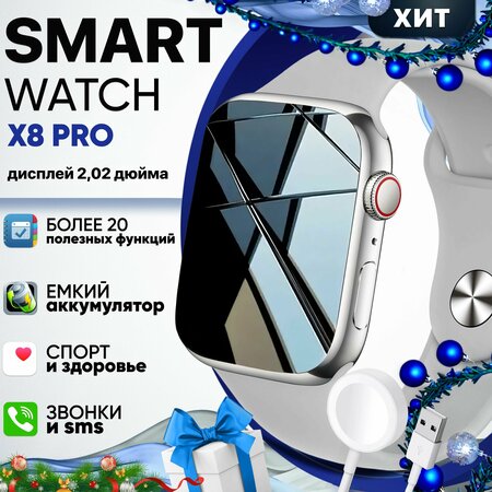 Smart Watch X8 Pro порадует вас быстрой работой и классными функциями. Смарт часы помогут вам проверять уведомления, отвечать на звонки, переключать музыку и даже заниматься спортом. Это декоративный классический аксессуар для девушки или парня и полезный гаджет для женщин и мужчин, который подключается к девайсам на ОС андроид или IOS, а также подойдут ко всем смартфонам (для самсунга, ксиоми xiaomi, ксяоми, huawei хуавей, samsung, honor хонор , Oppo оппо, Realme реалми, Vivo виво, Poco, и др моделей). Прямоугольный Smart-часы передают данные на устройства в удобное приложение «WearFit PRO». Они способны записывать данные без подключения к телефону, а при повторной синхронизации передавать их прямо на ваш iphone или Android. Быстрый процессор HS6621-PG обеспечивает высокую энергоэффективность и слаженную работу всех компонентов. Часы стали на 40% быстрее по сравнению с моделями прошлого года X8 Ultra. AMOLED дисплей с разрешением 390х435 позволяет вам использовать смарт-часы в любых условиях. Вы сможете подбирать желаемый цвет наручных часов под образ и стиль в гардероб, под настроение и настроить на них необычный дизайн циферблата. В наличии умные часы белого, черного, розового и золотого цвета. Силиконовый материал комфортно сидит на руке. Смарт часы мужские обладают длительным временем автономной работы до 7-ми дней Просматривайте уведомления из мессенджеров и приложений прямо на ваших часах. Уведомления приходят со всех популярных мессенджеров, в том числе Вкотакте, WhatsApp, Telegram. Также вы можете ответить на входящий звонок и набрать номер, даже не доставая айфон или смартфон на андроид. Фитнес-часы невероятно просты в использовании даже для пожилых людей благодаря приличному циферблату. Фитнес браслет показывает погоду как метеостанция. Смарт часы женские водостойкие и ударопрочные (противоударные). Корпус изготовлен из крепкого металла, а ремешок из качественного силикона. X8 Pro — это водонепроницаемые смарт-часы со степенью защиты IP67. Вы можете не снимать часы, когда моете руки, и не бояться попадания на них влаги. Также вы без проблем можете гулять в умных часах в дождливую погоду или заниматься в них спортом, используя как фитнес браслет. Идеально подходят не только для домашних условий, но и для активной игры на улице. Для использования всех функций смарт часов Watch Pro их необходимо синхронизировать со смартфоном. Приложение WearFit Pro дает доступ к широкому выбору спортивных тренировок, отслеживанию здоровья и физических показателей, а также позволяет кастомизировать ваши фитнес часы. Вы можете установить на умные часы один из более чем 500 бесплатных циферблатов или создать свой собственный из ваших фотографий. X8 pro — это больше, чем просто симпатичное украшение. Расширенный функционал поможет вам придерживаться целей в области здоровья. Беговые часы трекер для взрослых оснащены пульсометром и секундомером, имеют счетчик шагов и оборудованы другими датчиками, которые могут отслеживать уровень вашей активности. Электронные (электрические) ручные часы-браслет контролируют сатурацию и частоту пульса, кардио нагрузку и ваш сон. Присутствует измеритель тонометр для измерения артериального давления. Вотчи могут измерять количество потраченных калорий, что облегчает их подсчет и способствует похудению. Если вы из тех, кто любит оставаться на связи в дороге, мобильная воч техника 