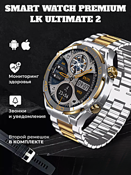LK Ultimate 2 Smart Watch считаются премиальной серией смарт часов – это совершенно современные наручные круглые часы с огромным функционалом. Это изысканное дополнение Ваших гаджетов. Смарт-часы являются одним из самых популярных атрибутов для смартфонов с операционными системами IOS 10.0 и выше и Android 5.0 и выше. Эти электронные часы на руку будут прекрасным дополнением к любому наряду и помогут оставаться в тренде. Стильные наручные мужские круглые часы - это полезный аксессуар на каждый день. С их помощью Вы можете говорить с собеседником, не вынимая телефон из кармана или сумки, ведь в них встроен очень хороший динамик и микрофон. Они позволяют осуществлять исходящие и входящие звонки, получать сообщения и уведомления с большинства известных мессенджеров, переключать музыку, фитнес-браслет, входящий в состав смарт-часов, помогает отслеживать физическую активность и здоровье (подсчет калорий, мониторинг сна, пульсометр, шагомер, измеряет давление), что особенно важно для тех, кто ведет активный образ жизни. Они способны выдерживать воздействие влаги и пыли, что позволяет не беспокоиться о его сохранности во время мытья рук или дождя. Часы для спорта считаются прекрасным туристическим аксессуаром. Smart-часы - это не просто аксессуары, это настоящие помощники, которые помогут организовать время, поддерживать связь и следить за своим здоровьем. Цифровые часы вотч - это отличный подарок на Новый год, День рождения, 23 февраля, 14 февраля. Уверены, что Вам придутся по нраву современные часы спортивные от проверенного производителя. Будьте в тренде и побалуйте себя! Не являются медицинским прибором. Подключение происходит через приложение HD Fit Pro. важно! Часы умные не являются изделием медицинского назначения и не могут быть использованы для диагностики, лечения, профилактики, медицинской реабилитации, мониторинга состояния организма человека, а также изделием для проведения медицинских исследований. Если у вас возникли вопросы или трудности с нашим товаром, пожалуйста, сообщите об этом в чате с продавцом, во вкладке - Заказы.