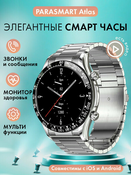 Смарт часы мужские PARASMART Atlas с функцией звонка, спортивный фитнес браслет с измерением давления, пульса и уровня кислорода, для андроид и айфона