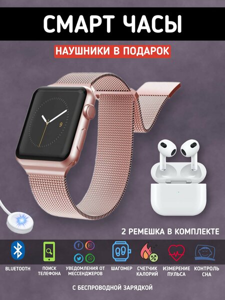 Премиальная серия смарт часов этого года. Умные часы с изогнутым экраном 2,5D - незаменимый аксессуар, позволяющий всегда оставаться на связи! Цифровые наручные часы имеют универсальный дизайн, а значит отлично подойдут как для мужчин, так и женщин. Силиконовый и металлический ремешок. Размер ремешка регулируется по запястью. Электронные умные часы оснащены микрофоном и динамиком, а также всеми необходимыми функциями, которые позволят не доставать телефон из сумки или кармана: уведомления, управление камерой, мониторинг сна, будильник, звонки, управление музыкой, сообщения, голосовой помощник - все это у вас на руке. Смарт гаджет заботится о вашем здоровье в режиме реального времени: измеряет артериальное давление, мониторит уровень кислорода в крови, контролирует частоту пульса, анализирует качество сна. Smart watch включают в себя: счётчик калорий, шагомер, пульсометр, 12 спортивных режимов, поэтому смело заменят любой фитнес браслет. Детские часы при активном пользовании держат заряд до 3 дней, а в режиме ожидания - до 10 дней. Электронный гаджет на руку имеет безрамочный сенсорный экран диагональю 1.91 дюйма, обеспечивающий насыщенный цвет и высокое разрешение. В часах стоит улучшенный процессор GW839aa, Часы с браслетом обладают влагозащитой IP67, что оберегает их от влаги и пыли, но не спасает от погружения в воду! Сенсорные часы подключаются к телефону через Bluetooth 5.0 и выше с помощью приложения, которое доступно для IOS (айос) и Android (андроид). Smart-watch послужат отличным подарком на День Рождения, 14 февраля, 8 марта, 23 февраля, Новый год. В подарок беспроводные наушники третьей серии и ремешок миланская петля.