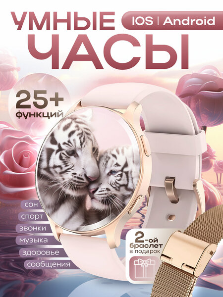 Современные часы Smаrt Wаtch NЕW с функциями телефона, bluetooth звонков, отслеживания своего здоровья, также с функциями фитнес-трекера и получения уведомлений о звонках, сообщениях и уведомлений от приложений, которые приходят на телефон. Смарт часы наручные оснащены большим ярким сенсорным дисплеем 1.43" с высоким разрешением 360x360 рх и новейшей технологией матрицы. Модель умных часов сочетает в себе современный и деликатный дизайн, сочетающий в себе практичность и легкость. Толщина корпуса часов всего 12 мм, размер циферблата 47мм. Ключевые особенности и функционал: • Отображение входящих звонков • Прием и отклонение входящих звонков по Bluetooth • Совершение звонков • Избранные номера • Текстовые уведомления. • Шагомер, отслеживание пройденного расcтояния, количество потраченных калорий. • Измерение пульса • Измерение кислорода в крови * Датчик измерения артериального давления ОТСУТСВУЕТ. • более 20 предустановленных спортивных режимов активности (ходьба, бег, велоспорт, скалолазание, йога, баскетбол, скакалка, эллиптические упражнения и другие) • Возможность расширить список спортивных режимов. Более 100 режимов устанавливаются через приложение • Управление музыкой • Поиск мобильного телефона • Голосовой помощник • Напоминание об активности и питьевом режиме • Для девушек, женское здоровье (календарь менструального цикла • Сменные циферблаты (возможность загрузить своё фото) • Мониторинг сна • Секундомер • Будильник • Виброрежим • Калькулятор * Данный товар не является медицинским прибором, не рекомендуется ориентироваться на их показания в медицинских целях. Совместимость с устройствами: Android 4.4 (и выше) и iOS 9.0 (и выше) • Синхронизация через Bluetooth 5.2 LE (низкое потребление энергии, стабильное подключение) • Бесплатное приложение для часов On Wear Pro • Встроенная память • Язык интерфейса часов и приложения Русский (английский и другие) Умные часы женские Smart Watch электронные будут отличным подарком на День рождения, Новый Год, и Рождество. Смарт часы круглые идеально подойдут любителям активного образа жизни, для занятий спортом и использовании в повседневной жизни. Смарт часы для андроид женские, золотые на руку могут прийти на пункт выдачи разряженными, чтобы их проверить требуется зарядить часы. Желаем вам приятных покупок