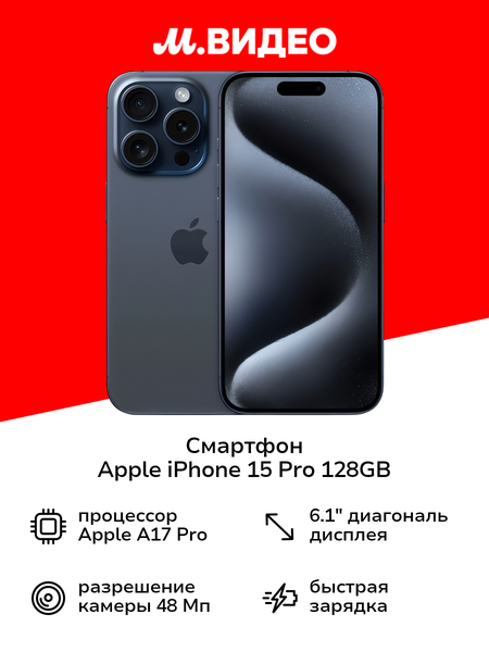 Данная модель могла быть активирована до продажи без привязки к аккаунту Apple ID. Это не влияет на потребительские характеристики, внешний вид товара, функциональность или какие-либо иные свойства продукта. Срок гарантии на смартфон составляет 1 год с момента покупки. Смартфон Apple iPhone 15 Pro Blue Titanium (Dual Sim) получил дисплей диагональю 6,1 дюйма, выполненный по технологии Super Retina XDR. Разрешение - 2556x1179 пикселей, яркость достигает 2000 кд/м², контрастность составляет 2000000:1 - изображение четкое, детализированное и насыщенное. Частота обновления 120 Гц обеспечивает плавность отображения любого динамичного контента. Экран защищает прочное стекло Ceramic Shield. В основе - шестиядерный процессор A17 Pro. Объем встроенной памяти для хранения данных - 128 Гб. Смартфон работает с двумя nano-SIM в сетях вплоть до 5G. Предусмотрена поддержка Wi-Fi для выхода в Сеть там, где есть точка доступа, Bluetooth версии 5.3 для связи с совместимыми устройствами и NFC для бесконтактной оплаты и других задач. Основная камера тройная: 48/12/12 Мп. Она способна снимать в разрешении до 4К (3840x2160 пикселей). Оптический зум на увеличение и на уменьшение, цифровая и оптическая стабилизация и вспышка помогут получить отличные результаты в любых условиях. Фокус при съемке портретов можно менять уже после того, как сделан снимок. Для селфи и видеосвязи предназначена фронтальная камера на 12 Мп. Смартфон снабжен универсальным портом USB Type-C, соответствующий кабель для зарядки прилагается. Доступна также беспроводная и быстрая зарядка, поддерживается технология MagSafe. Корпус выполнен из авиационного титана, внутренняя рама - из алюминия (100% переработки), задняя панель отделана стеклом. На боковой панели размещена кнопка Action Button, отвечающая активацию беззвучного режима, включение камеры, фонарика и прочих функций. Заявлена защита по стандарту IP68 - смартфон может без вреда для себя погружаться на глубину до 6 м. Отсутствует функция Audio Facetime у смартфонов с двумя физическими сим-картами .