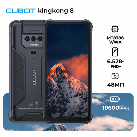 Смартфон Cubot King Kong 8 6+256 Gb RUS – мощный и стильный выбор для тех, кто ценит качество и функциональность. Мощный процессор MediaTek 8788 и 6 ГБ оперативной памяти обеспечивают быструю и плавную работу всех приложений и игр. 256 ГБ встроенной памяти позволяют хранить большое количество данных и приложений. Большой экран с разрешением 1620 x 712 пикселей обеспечивает яркое и четкое изображение. Камера 48 Мп с функцией ночной съемки позволяет делать качественные фотографии в любых условиях. Емкий аккумулятор 10600 мАч обеспечивает длительное время работы без подзарядки. Смартфон оснащен NFC, двумя nano SIM-картами, Wi-Fi, Bluetooth и GPS. Защитное стекло на экран, сетевое зарядное устройство, соединительный кабель Type-C – Type-C, специальный инструмент для извлечения сим-лотка, инструкция на русском языке, гарантийный талон и подарочная коробка входят в комплект. Смартфон выполнен в классическом корпусе из металла и пластика. Степень защиты IP68 и IP69K обеспечивает ударопрочность и защиту от пыли и влаги. Операционная система Android 13 и поддержка 3G, 4G, LTE связи делают смартфон Cubot King Kong 8 6 256 Gb RUS надежным и функциональным выбором для повседневного использования.