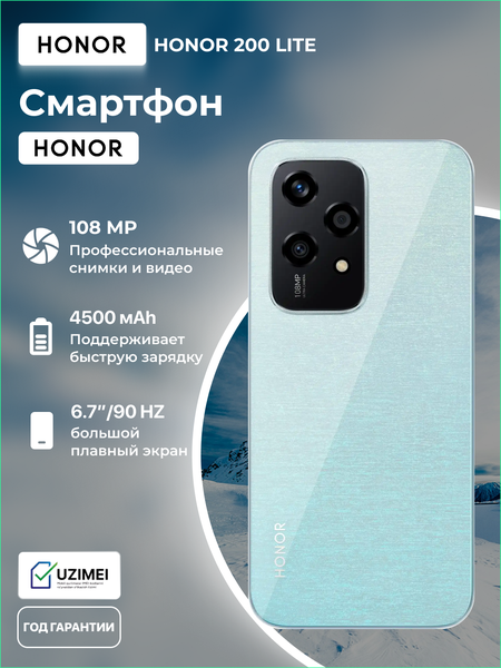 HONOR 200 LITE 8GB+256GB STARRY BLUE: стильный и функциональный смартфон HONOR 200 LITE 8GB+256GB STARRY BLUE - это стильный и функциональный смартфон, который станет незаменимым помощником в повседневной жизни. Смартфон оснащен 8 ГБ оперативной памяти и 256 ГБ встроенной памяти, что позволяет хранить большое количество приложений и файлов. Смартфон работает на базе операционной системы Android, что обеспечивает широкий выбор приложений и игр на любой вкус. Экран смартфона имеет диагональ 6.7 дюйма, что обеспечивает комфортное использование и просмотр контента. Процессор MediaTek Dimensity 6080 обеспечивает высокую производительность и быстродействие смартфона, позволяя запускать игры и приложения без задержек. Выбирая HONOR 200 LITE 8GB+256GB STARRY BLUE, вы получаете стильный, функциональный и производительный смартфон, который станет вашим надежным помощником в повседневной жизни.