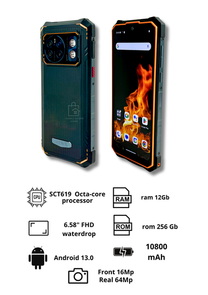 Смартфон HOTWAV Cyber 13 PRO, 12+256 Gb – мощный, надежный, производительный и функциональный противоударный смартфон. Данная модель оснащена мощным фонариком в 150 Lumen. Смартфон имеет стильный и прочный дизайн, выполненный из высококачественных материалов, что делает его идеальным выбором для активного использования на открытом воздухе или в экстремальных условиях. Оснащенный мощным 8-и ядерным процессором Spreadtrum T619 с частотой 2200 МГц и оперативной памятью 12Gb. Смартфон HOTWAV Cyber 13 PRO обеспечивает плавную и быструю работу при выполнении различных задач, включая мультимедийное воспроизведение, игры и многозадачность. HOTWAV Cyber 13 PRO имеет яркий и четкий 6,6 - дюймовый дисплей с высоким разрешением 2408х1080 FHD+, что позволяет наслаждаться яркими и детализированными изображениями. HOTWAV Cyber 13 PRO также оснащен объемом встроенной памяти – 256 Gb, что позволяет хранить большое количество файлов, фотографий и видео. Смартфон также имеет встроенную батарею большой емкости 10800 mAh, которая обеспечивает длительное время работы без необходимости частой зарядки. И за счет функции быстрой зарядки, ваш смартфон всегда будет готов к действию. Кроме того, функция обратной зарядки позволяет использовать ваш Cyber 13 Pro в качестве переносного зарядного устройства для других устройств. HOTWAV Cyber 13 PRO также обладает высококачественной камерой в 64 MP, которая позволяет делать четкие и яркие фотографии и видео. Благодаря поддержке различных сетей и возможности использования двух SIM-карт, смартфон обеспечивает стабильное подключение к интернету и связи в любой точке мира. В целом, HOTWAV Cyber 13 PRO - это надежный и мощный смартфон, который предлагает широкий набор функций и возможностей для удовлетворения потребностей пользователей в работе, развлечениях и связи. Кроме того, операционная система Android 13 обеспечит вам безупречный интерфейс и удобство использования.