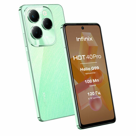 HOT 40 PRO ― Портал в мир развлечений. Helio G99 производительный процессор Игровой режим “XBOOST” 108 Мп основная камера 120 Гц FHD+ дисплей 33 Вт быстрая зарядка Благодаря 6-нм техпроцессу Helio G99 обладает хорошим уровнем производительности и энергоэффективности. На 10% выше частота GPU На 28% выше пропускная способность памяти Ощутите преимущество фирменного игрового движка XBOOST, специально оптимизированного для игровых сценариев. Свайпом влево во время игры вы можете вызвать тактическую панель, с помощью которой можно в одно касание оптимизировать ресурсы устройства и направить их на повышение производительности. 108 Мп основная камера Камера высокого разрешения с сенсором HM6 позволит вам создавать и редактировать по-настоящему притягательные снимки. Фотографируйте в максимальном разрешении 108 Мп для последующего кропа изображений, или же доверьтесь автоматике и технологии биннинга пикселей для получения снимков с высоким диапазоном HDR. 120 Гц FHD+ дисплей Премиальный FHD+ экран с частотой обновления экрана 120 Гц обеспечивает превосходную плавность работы интерфейса. 90.7% ― полезная площадь экрана 1080P ― разрешение экрана Быстрая зарядка 33 Вт обеспечивает высокую скорость восполнения аккумулятора HOT 40 Pro, а батарея на 5000 мАч в сочетании с решением Марафонская Выносливость обеспечивает до суток в режиме ожидания. Зарядка от 20% до 75% за 35 минут До 34 дней в режиме ожидания До 45 часов в режиме звонков До 9 часов игр