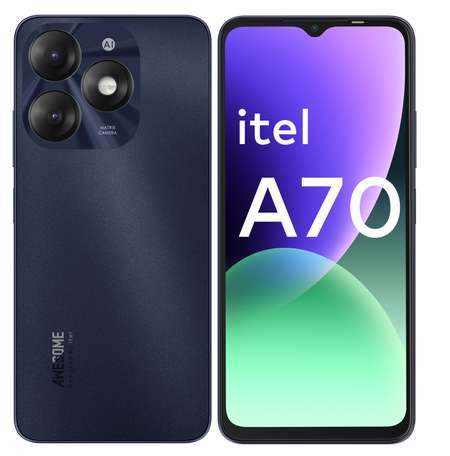 Itel A70 обладает 6,6-дюймовым монитором и IPS-экраном с разрешением 1612x720 точек и частотой обновления экрана 60 Гц. Внутри устройства восьмиядерный процессор Unisoc Tiger T603 с частотой 1800 ГГц, который обеспечивает поддержку сотовых сетей четвертого поколения. Питается смартфон от аккумулятора емкостью 5000 мАч. На корпусе также расположен 3.5 jack для проводных наушников. Смартфон оснащен сканером отпечатков пальцев на боковой стороне, функцией распознавания лица, фронтальной камерой на 8 мегапикселей, основная камера с разрешением 13+0,08 мегапикселей. Объем оперативной памяти составляет 4 ГБ, накопителя – 256 ГБ и присутствует отдельный слот для карты памяти, объём которой не превышает 2048 Гб. У смартфона присутствуют датчик освещения, приближения и акселерометр. Телефон работает на системе Android.