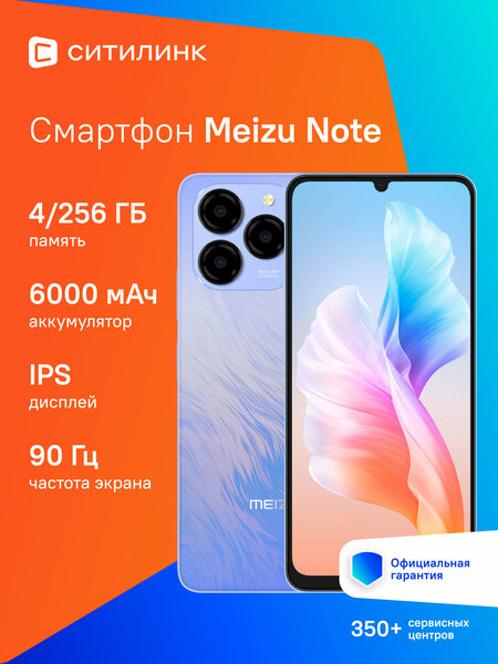 Meizu Note 21 телефон работает на базе Android 14 с поддержкой Google Mobile Services, что обеспечивает удобный доступ к современным приложениям и сервисам. Экран с диагональю 6,74 дюйма выполнен по технологии IPS, имеет разрешение HD+ и соотношение сторон 20:9. Яркость достигает 450 кд/м², контрастность – 1500:1, а частота обновления составляет 90 Гц, что делает изображение плавным и комфортным для просмотра видео и игр. Процессор Unisoc T606 с восемью ядрами и тактовой частотой до 1,6 ГГц обеспечивает стабильную работу системы и приложений. За графику отвечает ARM Mali-G57 MP1. Объем оперативной памяти равен четырем гигабайтам, а встроенной памяти – двести пятьдесят шесть гигабайт с возможностью расширения через отдельный слот microSD. Тройная основная камера включает главный сенсор на пятьдесят мегапикселей, датчик глубины на два мегапикселя и дополнительный модуль на восемь мегапикселей. Камера оснащена автофокусом и LED-вспышкой для съемки в различных условиях. Запись видео доступна в формате Full HD при тридцати кадрах в секунду. Фронтальная камера имеет разрешение восемь мегапикселей. Связь обеспечивается сетями второго, третьего и четвертого поколений с поддержкой LTE и VoLTE. Для подключения к интернету предусмотрены стандарты Wi-Fi пятой версии (802.11 a/b/g/n/ac) и Bluetooth пятой версии. Навигация реализована через GPS, ГЛОНАСС, Galileo и BeiDou. В телефоне используется комбинированный лоток под две nano-SIM-карты без поддержки eSIM. Разблокировка происходит с помощью сканера отпечатков пальцев на боковой панели устройства. Аккумулятор обладает емкостью шесть тысяч миллиампер-часов с поддержкой быстрой зарядки мощностью восемнадцать ватт через USB Type-C кабель. Звуковое оформление включает два динамика и стандартный аудиоразъем на три с половиной миллиметра для наушников. Корпус моноблочного типа изготовлен из стекла и металла; экран покрыт защитным стеклом с 2,5D-изогнутым покрытием для комфортного использования. Вес телефона составляет двести семнадцать граммов; устройство представлено в голубом цвете корпуса. В комплект поставки входят сам телефон, зарядное устройство мощностью восемнадцать ватт, кабель USB-C–USB-A и инструмент для извлечения SIM-карт. Это устройство подойдет тем, кто ищет недорогой смартфон с хорошей производительностью для повседневных задач — просмотра контента, общения и запуска игр среднего уровня без лишних затрат. Телефон сочетает прочность корпуса со сбалансированными техническими характеристиками, что делает его практичным выбором среди бюджетных моделей современной электроники на платформе андроид. Не установлен единый магазин приложений RuStore.