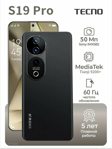 S19 Pro - это флагманский смартфон, представляющий собой идеальное сочетание передового дизайна и высоких технических характеристик: •Экран: Грандиозный 6.78-дюймовый дисплей с разрешением 2800*1260 пикселей предлагает невероятно яркое и детализированное изображение.•Операционная система: Запущенный на последней версии Android 14, этот смартфон гарантирует плавную и быструю работу приложений. •Память: Объединение 16 ГБ оперативной памяти и 512 ГБ встроенной памяти обеспечивает безупречную производительность и огромное пространство для хранения ваших данных. •Камера: Комбинация основной 50-мегапиксельной и фронтальной 50-мегапиксельной камер предоставляет потрясающую возможность снимать яркие и четкие фотографии и видео. •Аккумулятор: Воспользуйтесь необычайной автономностью благодаря мощному 5500 мAh батарее, которая обеспечит вам долгий рабочий день без необходимости подзарядки. •Производительность: Восьмиядерный процессор Dimensity 9200 позволяет справляться с самым требовательными задачами и играми без задержек. •Комплектация: В комплекте вы найдете зарядное устройство соответствующее европейским стандартам, кабель, защитную пленку, инструкцию, заглушки для SIM-карт, чехол, чтобы ваш телефон был готов к использованию сразу после покупки. S19 Pro – это смартфон премиум-класса, который сочетает в себе все лучшее для тех, кто ценит производительность, стиль и качество.