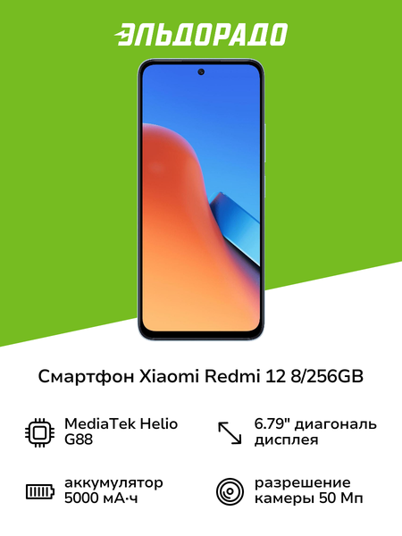 Смартфон Xiaomi 12 Sky Blue оснащен восьмиядерным процессором MediaTek Helio G88 частотой 2x2 ГГц + 6x1,8 ГГц. Объем оперативной памяти - 8 Гб, встроенной - 256 Гб. При необходимости хранилище можно расширить за счет карты microSD. Девайс работает на MIUI на базе ОС Android 13. Смартфон поддерживает установку nano-SIM, функционирует в сетях вплоть до 4G. Беспроводные технологии представлены модулями Wi-Fi 802.11a/b/g/n/ac для выхода в Интернет и Bluetooth 5.1 для обмена данными с другими совместимыми устройствами. Встроен разъем 3,5 мм для наушников. Поддерживаются навигационные системы GPS, ГЛОНАСС. Они помогут без труда сориентироваться в незнакомом месте, найти нужный адрес. Дисплей диагональю 6,79-дюйма выполнен по технологии IPS и обладает разрешением HD+ (1080х2400 пикселей). Основная камера обладает разрешением 50 Мп, оснащена дополнительными объективами на 8 Мп и 2 Мп. Фронтальная камера для селфи и видеосвязи - на 8 Мп. На боковой панели расположен сканер отпечатков пальцев, который обеспечит быструю авторизацию владельца и защитит данные от посторонних. Кроме того, доступ возможен по распознаванию лица. В смартфон установлен аккумулятор емкостью 5000 мА*ч. Он поддерживает быструю зарядку (22,5 Вт), соответствующее зарядное устройство поставляется в комплекте. Тип интерфейса для подключения - USB-С.