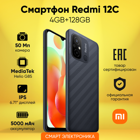 Redmi 12C (C3TN) Ключевые преимущества: Производительный MediaTek Helio G85 Поддержка карт памяти MicroSD Иммерсивный дисплей HD+ c диагональю 6,71” Сканер отпечатков пальцев на задней стороне 50 Мп, две камеры с ИИ Четкие ночные снимки в ночном режиме 5000 мАч, ёмкий аккумулятор 10 Вт, адаптер в комплекте а также: NFC, выделенный слот для карты памяти MicroSD объёмом до 512 Гб, разъём для наушников, FM-радио и многое другое
