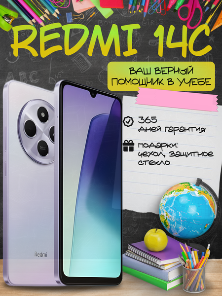 Добро пожаловать в мир Xiaomi Redmi 14C — инновационного смартфона, который преобразит вашу повседневную жизнь! Если вы ищете мощное, стильное и надежное устройство по доступной цене, Redmi 14C — именно то, что вам нужно. Этот смартфон завоевал сердца пользователей по всему миру, сочетая передовые технологии с элегантным дизайном и являясь одним из лучших представителей своего сегмента. Мощь и плавность работы Благодаря современному процессору и большому объёму оперативной памяти Redmi 14C обеспечивает молниеносную скорость работы и плавный интерфейс. Забудьте о долгих загрузках и зависаниях — устройство легко справляется с любыми приложениями и многозадачностью. Яркий и насыщенный экран Экран Redmi 14C с высоким разрешением и живыми цветами превращает просмотр видео, игр и фотографий в настоящее удовольствие. Широкий угол обзора и точная цветопередача позволяют наслаждаться контентом в любых условиях освещения. Камеры для идеальных снимков Основная камера смартфона создаёт яркие и чёткие фотографии даже при плохом освещении, обеспечивая профессиональное качество снимков. Фронтальная камера подарит вам отличные селфи и качественные видеозвонки с близкими. Долгая работа и быстрая зарядка Встроенный аккумулятор обеспечивает длительное время работы без подзарядки, а функция быстрой зарядки позволит быстро восстановить энергию и оставаться на связи в течение всего дня. Xiaomi Redmi 14C — надежный помощник как в работе, так и в отдыхе. Не откладывайте покупку — закажите Redmi 14C уже сегодня и оцените сочетание высокого качества, стиля и производительности по привлекательной цене!