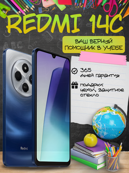 Добро пожаловать в мир Xiaomi Redmi 14C — инновационного смартфона, который преобразит вашу повседневную жизнь! Если вы ищете мощное, стильное и надежное устройство по доступной цене, Redmi 14C — именно то, что вам нужно. Этот смартфон завоевал сердца пользователей по всему миру, сочетая передовые технологии с элегантным дизайном и являясь одним из лучших представителей своего сегмента. Мощь и плавность работы Благодаря современному процессору и большому объёму оперативной памяти Redmi 14C обеспечивает молниеносную скорость работы и плавный интерфейс. Забудьте о долгих загрузках и зависаниях — устройство легко справляется с любыми приложениями и многозадачностью. Яркий и насыщенный экран Экран Redmi 14C с высоким разрешением и живыми цветами превращает просмотр видео, игр и фотографий в настоящее удовольствие. Широкий угол обзора и точная цветопередача позволяют наслаждаться контентом в любых условиях освещения. Камеры для идеальных снимков Основная камера смартфона создаёт яркие и чёткие фотографии даже при плохом освещении, обеспечивая профессиональное качество снимков. Фронтальная камера подарит вам отличные селфи и качественные видеозвонки с близкими. Долгая работа и быстрая зарядка Встроенный аккумулятор обеспечивает длительное время работы без подзарядки, а функция быстрой зарядки позволит быстро восстановить энергию и оставаться на связи в течение всего дня. Xiaomi Redmi 14C — надежный помощник как в работе, так и в отдыхе. Не откладывайте покупку — закажите Redmi 14C уже сегодня и оцените сочетание высокого качества, стиля и производительности по привлекательной цене!