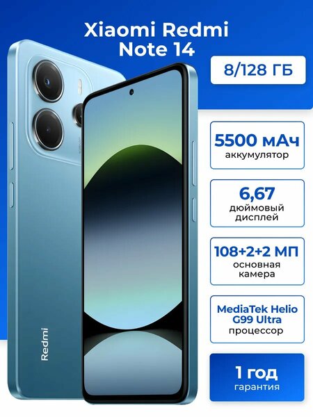 Смартфон Xiaomi Redmi Note 14, 8/128GB, экран 6.7", Ocean Blue