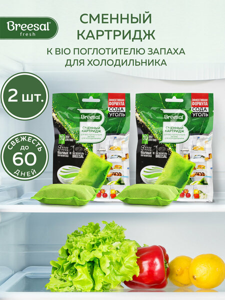 Сменный блок Breesal для биопоглотителя запаха и влаги в холодильнике - удобный способ сохранять свежесть в холодильнике с заботой о вашем бюджете. Ваши продукты будут храниться дольше: поглотитель не только устраняет все виды неприятных запахов, но и впитывает влагу и этилен, выделяемый фруктами и овощами при созревании. Продукт способен заменить до 8 аналогичных средств и эффективно устранить запахи даже в морозильной камере.