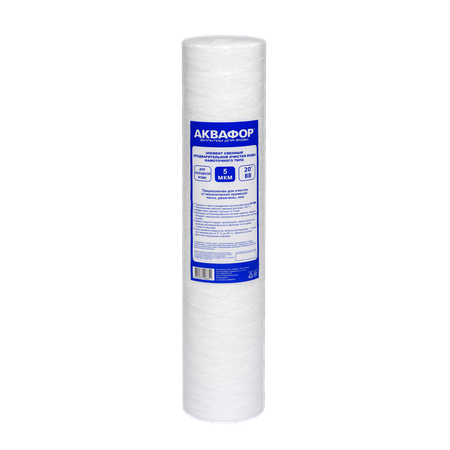 Веревочный картридж Аквафор обладает оптимизированной системе намотки, которая обеспечивает повышенную грязеемкость и увеличенный срок службы. Предназначен для очистки холодной воды от механических загрязнителей: песка, ржавчины, ила. Диаметр 112 мм, высота 508 мм - подходит для корпуса фильтра Гросс 20 и ко всем остальным стандартным корпусам типоразмера 20 Big Bue. Удаляет все частицы размером более 5 микрон (0,0005 см). Заменять модуль рекомендуется в случае падения производительности фильтра, но не реже 1 раза в 6 месяцев.