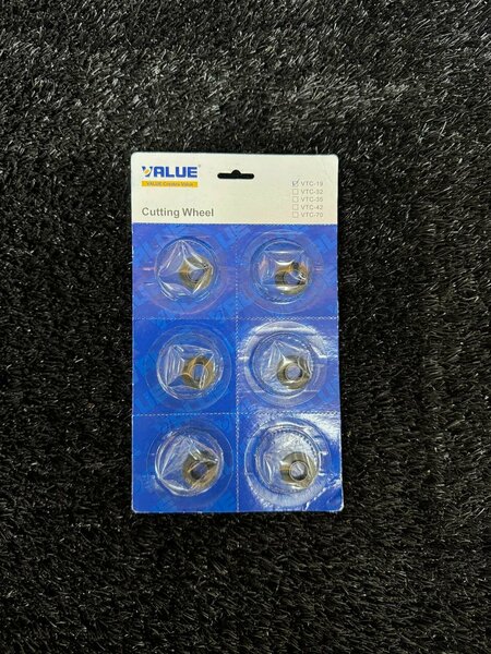 Сменные лезвия для трубореза Value / Режущий ролик VTC-19 (1 шт.) Ролик для трубореза Value VTC-19 Blade является важной запасной частью для трубореза Value VTC-19. Вот основные характеристики и преимущества этого ролика: Сменный ролик из прочной быстрорежущей стали: Ролик изготовлен из высококачественной быстрорежущей стали, что обеспечивает его прочность и долгий срок службы. Чистый разрез: Использование этого ролика позволяет делать чистые и аккуратные разрезы, что важно при монтаже кондиционеров и другого холодильного оборудования. Легкая и быстрая замена: Ролик легко и быстро заменяется, что упрощает обслуживание трубореза и позволяет продолжать работу без длительных простоев. Ролик для трубореза Value VTC-19 Blade является незаменимой запасной частью, которая обеспечивает эффективность и точность при резке медных труб.