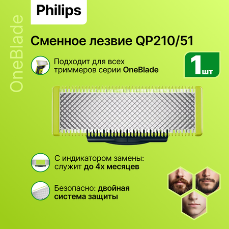 Лезвия подходят к следующим моделям: Philips OneBlade QP2520 Philips OneBlade QP2530 Philips OneBlade Pro QP6510 Philips OneBlade Про QP6520 Сменные лезвия Philips OneBlade - это революционная электрическая технология, созданная для мужчин, которые носят щетину или бороду. OneBlade подравнивает, делает контуры и бреет щетину любой длины. Уникальная технология OneBlade состоит из быстро двигающегося режущего блока, который совершает 200 движений в секунду, и системы двойной защиты. Они обеспечивают эффективное и комфортное бритье даже самой длинной щетины. OneBlade сбривает щетину не слишком близко к коже для комфортных ощущений от бритья. В комплекте идет 1 сменное лезвие. Сменное лезвие служит до 4 месяцев. Для поддержания оптимальной эффективности меняйте лезвие раз в 4 месяца. Зеленый индикатор износа поможет понять степень износа лезвия. Сменные лезвия станут прекрасным дополнением к основному подарку для мужчин на 23 февраля, Новый Год или День Рождения. Это именно то, что никогда не будет лишним для обладателей триммеров Philips OneBlade.