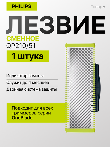 Лезвия подходят к следующим моделям: Philips OneBlade QP2520 Philips OneBlade QP2530 Philips OneBlade Pro QP6510 Philips OneBlade Про QP6520 Сменные лезвия Philips OneBlade - это революционная электрическая технология, созданная для мужчин, которые носят щетину или бороду. OneBlade подравнивает, делает контуры и бреет щетину любой длины. Уникальная технология OneBlade состоит из быстро двигающегося режущего блока, который совершает 200 движений в секунду, и системы двойной защиты. Они обеспечивают эффективное и комфортное бритье даже самой длинной щетины. OneBlade сбривает щетину не слишком близко к коже для комфортных ощущений от бритья. В комплекте идет 1 сменное лезвие. Сменное лезвие служит до 4 месяцев. Для поддержания оптимальной эффективности меняйте лезвие раз в 4 месяца. Зеленый индикатор износа поможет понять степень износа лезвия. Сменные лезвия станут прекрасным дополнением к основному подарку для мужчин на 23 февраля, Новый Год или День Рождения. Это именно то, что никогда не будет лишним для обладателей триммеров Philips OneBlade.