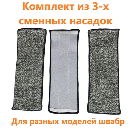 Комплект из 3-х сменных насадок размером 32 на 12 см подойдет для влажной и сухой уборки для самых разных моделей швабр. Насадки крепятся к рабочей части швабры на надёжные крепления-кармашки и липучки. Сменные тряпки легко убирают жидкие загрязнения и липкие пятна, небольшой ворс эффективно захватывает мелкие частицы мусора и пыли. Насадки можно стирать в стиральной машине по мере загрязнения, они устойчивы к механическим повреждениям и быстро сохнут. Тряпка для швабры выполнена из микрофибры, с внутренней стороны она имеет рыхлую структуру и специальные петли, которые надежно крепят насадку к липучкам и крючкам, расположенным на поверхности швабры. Простроченный край тряпки не дает ей потерять первоначальную форму, поэтому сменные насадки отличаются долговечностью, быстро впитывают влагу, захватывают пыль и не размазывают загрязнения по убираемым поверхностям. Уникальные насадки на швабру, которые устранят даже самые стойкие загрязнения. Сменные насадки с липучками подходят к любой швабре, а их прямоугольная форма позволяет проникать в самые труднодоступные места. Она подходит для использования со специальным отжимающим ведром, которое оставляет насадку оптимально влажной. Тряпку можно использовать не только для мытья полов, но и для очищения окон, зеркал, потолка и стен. Половая тряпка из микрофибры очищает от грязи, пыли и прочего мусора любые твердые поверхности, такие как кафель, паркет, ламинат, дерево или мрамор. Насадку можно стирать в стиральной машине при температуре не выше 40 градусов, она долгое время не портится и не теряет своих очистительных функций. Сушить насадки для швабры рекомендуется прямо на швабре. Тряпка для уборки позволяет удалить основную часть бактерий с поверхности на 99%, без необходимости физического контакта. Использование специальных насадок на швабры сократит время уборки в 2-3 раза, а ее качество только возрастет. Половая тряпка рассчитана на 1000+ влажных уборок.