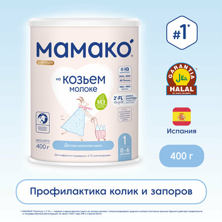 МАМАКО® 1 Premium с олигосахаридами грудного молока — важный шаг в эволюции детского питания. Инновационные компоненты и натуральное козье молоко создают двойную пользу для здоровья ребенка. Легкое усвоение приближает ценность смеси к свойствам материнского молока.