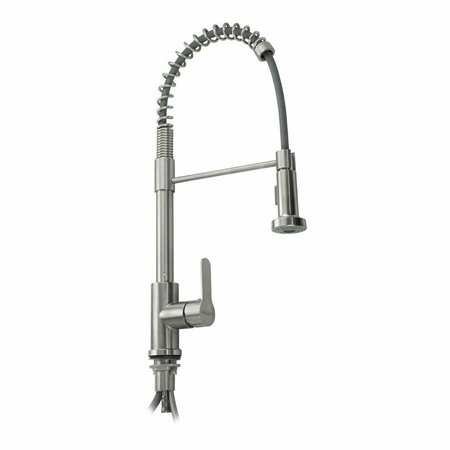 Смеситель для кухонной мойки и раковин, вытяжной, матовый, боковой шаровый d = 40 мм массивный корпус из нержавеющей стали с гибким пружинным изливом, с фиксирующим держателем на корпусе лейка - аэратор с рычагом для подачи воды Крепление резьба - гайка литая ручка Габаритные размеры: