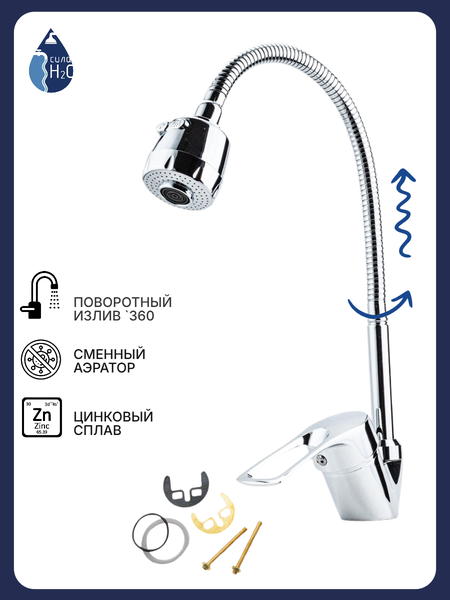 Смеситель для мойки, аэратор с переключение 2 режима, излив в металлической оплетке