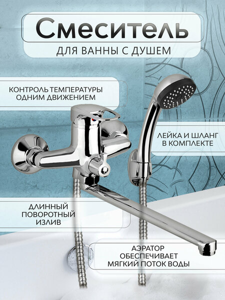 Смеситель для ванны олимп 43BE76 - это современное и функциональное решение для вашей ванной комнаты. Однорычажное управление обеспечивает удобство и точность регулировки напора и температуры воды. Благодаря этому, вы сможете наслаждаться комфортом и удобством использования. Смеситель для ванной оснащен поворотным изливом длиной 30 мм, что позволяет легко регулировать направление потока воды. Смеситель для ванны с длинным изливом устанавливается на стену, что позволяет сохранить пространство на полу и обеспечивает аккуратный вид ванной комнаты. В комплекте со смесителем идут шланг длиной 150 см и лейка для душа. Это позволяет вам сразу же начать использование смесителя после установки. Смеситель для ванной с душем олимп 43BE76 изготовлен из силумина, что обеспечивает его прочность и долговечность. Хромовое покрытие придает смесителю современный и стильный вид. Смеситель имеет два монтажных отверстия и вертикальный монтаж. Расстояние между отверстиями 150 мм. Смеситель для ванны олимп 43BE76 - это сочетание современного дизайна, удобства использования и надежности.