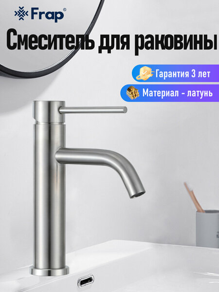Смеситель кран для раковины умывальника для ванны Frap F10807 сатин