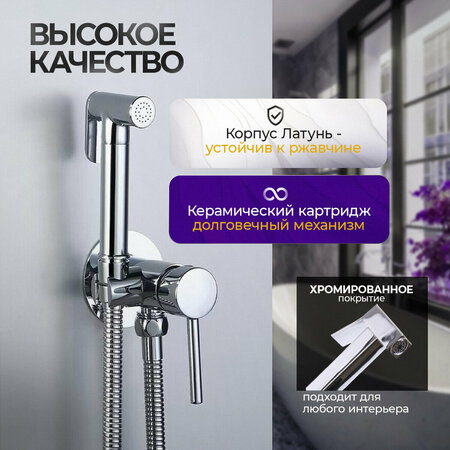 Гигиенический душ со смесителем черный матовый из латуни. Характеристики смесителя с гигиеническим душем: Стандарт подводки: G 1/2. Монтаж: настенный. Управление: нажимное, рычажное Длина шланга для душа: 150 см Отверстия для монтажа: 2 Механизм: керамический картридж Количество режимов струи: 1 Установка душа скрытым способом: Сделайте углубление в основании конструкции, в нём должны разместиться все крепёжные элементы. Проштробите стены для труб. Смонтируйте развязку трубопровода. Установите в стену монтажную коробку, подведите к ней трубы. Подключите систему к трубопроводу. Проверьте, на месте ли резиновые прокладки и герметичны ли соединения. Тщательно зафиксируйте монтажную коробку в углублении в стене. Проведите отделочные работы (оштукатурьте стены, наклейте плитку и пр.), не забудьте организовать ревизионный люк, чтобы иметь доступ к смесителю и трубам внутри стены. Присоедините составные части душа и закрепите на стене держатель для лейки.