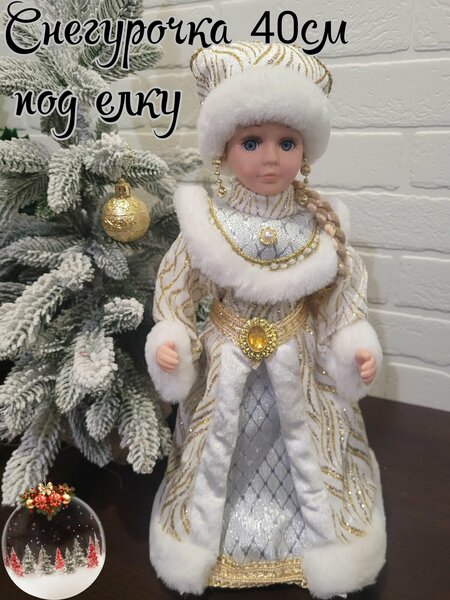 Снегурочка 40 см под елку в шубке из парчи/Подарок